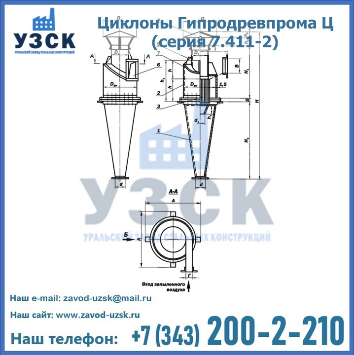 Циклоны Гипродревпрома Ц (серия 7.411-2) высокого качества можно купить в компании «УЗСК» в Арысе. Наши специалисты предоставят всю необходимую информацию информацию и помогут с выбором модели циклона. Подробные технические характеристики, конструкцию, параметры, ассортимент и стоимость продукции можно также найти на сайте УЗСК.