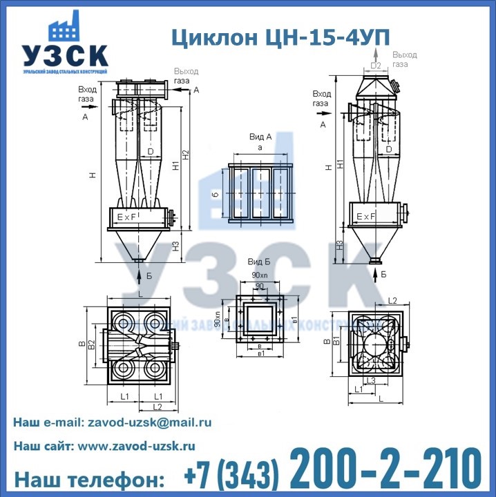 Завод «УЗСК» в Арысе предлагает большой выбор циклонов ЦН-15-800×4УП и прочих устройств, полностью укомплектованных и готовых к эксплуатации. Мы гарантируем соответствие оборудования всем требованиям ГОСТ и ТУ, износостойкость и высокую производительность предлагаемого оборудования. Уральский Завод Стальных Конструкций изготавливает и продает надежное, эффективное и производительное оборудование, имеющее длительную гарантию и большой эксплуатационный ресурс. Если требуется изготовить циклон нестандартных размеров, то такой вариант выполнения заказа тоже предусмотрен, так как предприятие имеет собственные производственные площади и надежных поставщиков. На все поставляемое или производимое оборудование имеются чертежи и прочая техническая документация. Заказать и купить циклоны или прочее оборудование высокого качества и по доступной цене можно через наш сайт или по указанному в разделе «Контакты» телефону.