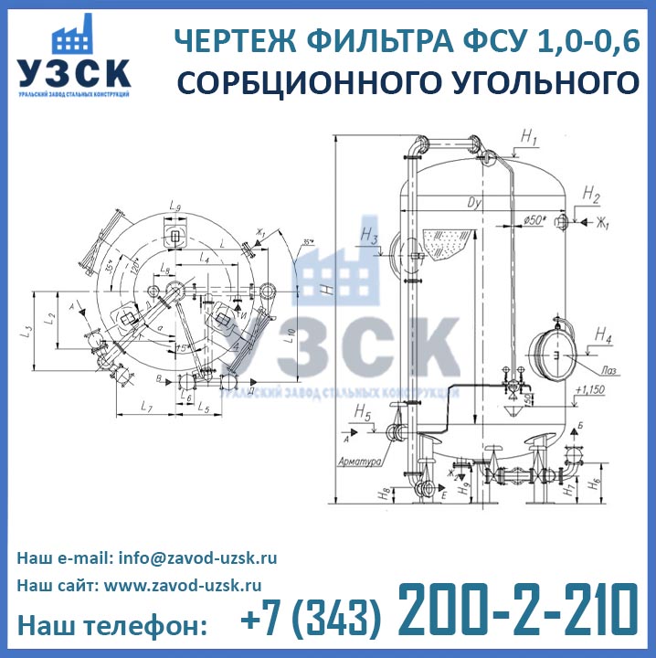 Наш завод (Уральский завод стальных конструкций) является производителем угольных фильтров, сам осуществляет изготовление и реализацию выпускаемой продукции. Приобретая фильтры ФСУ-1.0-0.6 в Арысе от производителя, Вы приобретаете оборудование без наценок всевозможных посредников, а также значительно экономите свое время. Фильтры ФСУ1.0-0.6 завода УЗСК – это гарантия качества, кратчайшие сроки изготовления и цена, которая Вам понравится.