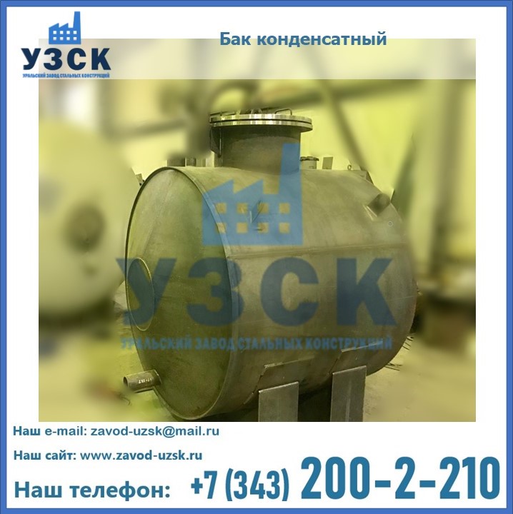 Многие заказчики стараются конденсатные баки купить по выгодной цене в компании «УЗСК» в Арысе. Причин несколько. Производитель поставляет емкости с полным комплектом лестниц, площадок обслуживания. Бак после гидравлических испытаний покрывают специальной внутренней и наружной краской, накладывают теплоизоляцию или наваривают крепеж для навески минматов. Условия теплоизоляции согласуются с заказчиком.