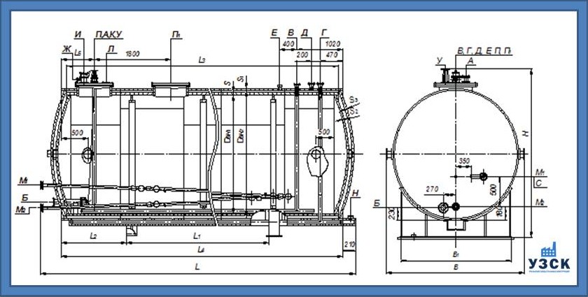 Технические характеристики резервуаров горизонтальных двустенных - РГД, РГСД