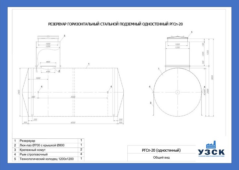 РГСДн-20: горизонтальный резервуар двустенный наземного расположения;