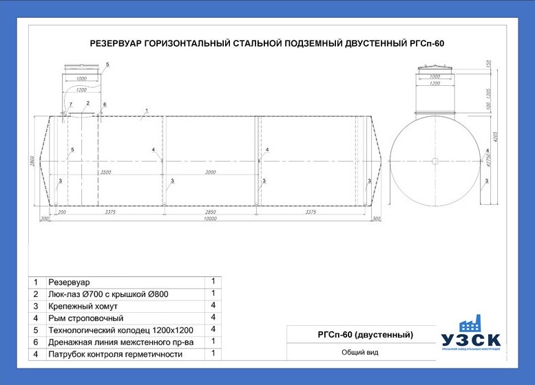 РГСДн-60: горизонтальный резервуар двустенный наземного расположения;